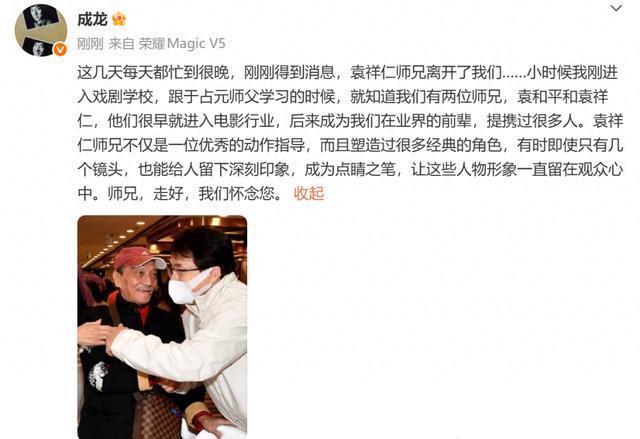 成龙、甄子丹发文悼念